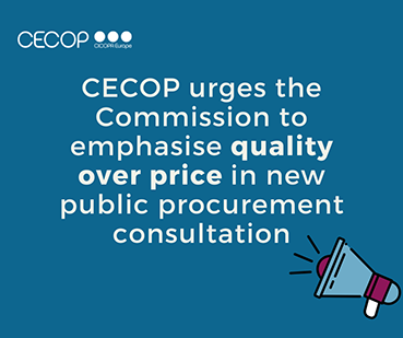 CECOP-CICOPA Europa ha dirigido un escrito a la Comisión Europea en el que pide que las autoridades comunitarias den más importancia a la calidad y menos al precio en los pliegos sobre contratación pública. En el mismo escrito, CECOP propone una serie de recomendaciones para mejorar la relación con las empresas de economía social y las cooperativas, como eliminar cargas administrativas o aclarar, en los casos en los que sea necesario, los motivos de exclusión de ofertas presentadas.